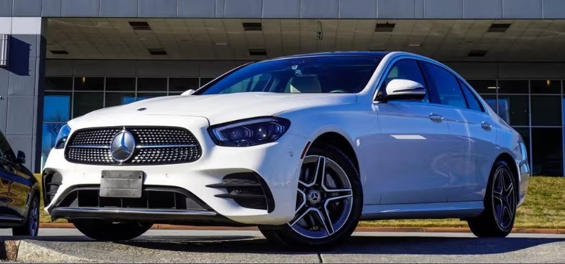مرسيدس-بنز E 350 4MATIC® 2023 باللون الأبيض تجمع بين الفخامة الألمانية والأداء العملي. مزودة بمحرك I4 مع ناقل حركة أوتوماتيكي…
